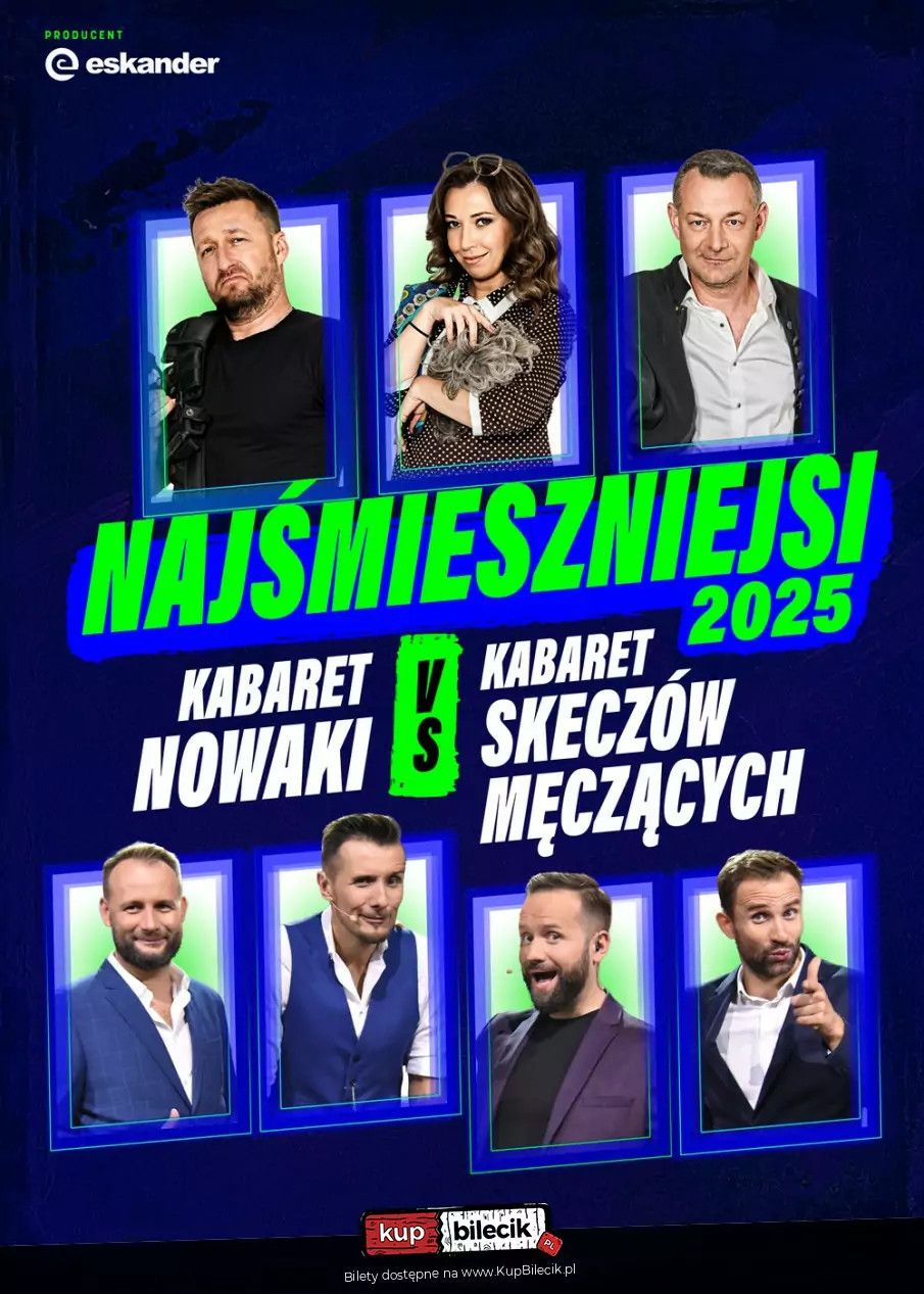 bilety: Co może być lepsze niż oglądanie jednego z najlepszych kabaretów w Polsce? Oglądanie dwóch! "Najśmieszniejsi 2026" to wyjątkowe wydarzenie kabaretowe z udziałem gigantów polskiego humoru: Kabaretu Skeczów Męczących i Kabaretu Nowaki. Najśmieszniejsi 2026 - Kabaret Nowaki vs Kabaret Skeczów Męczących artyści: Kabaret Skeczów Męczących, Kabaret NowakiCo może być lepsze niż oglądanie jednego z najlepszych kabaretów w Polsce Oglądanie dwóch! „Najśmieszniejsi 2026” to wyjątkowe wydarzenie kabaretowe z udziałem gigantów polskiego humoru: Kabaretu Skeczów Męczących i Kabaretu Nowaki. To oryginalne połączenie gwarantuje wieczór pełen premierowych skeczy, błyskotliwego humoru i celnych obserwacji rzeczywistości. Artyści w nowej, zaskakującej formule odważnie komentują codzienne absurdy, społeczne zjawiska i aktualne wydarzenia. A wszystko to w lekkiej i inteligentnej formie. Zobacz program, który łączy różne style komediowe i trafia zarówno do fanów klasycznego kabaretu, jak i nowoczesnych form rozrywki. "Najśmieszniejsi 2026" to dynamiczne tempo, wyraziste postaci, niespodziewane zwroty akcji i kumulacja energii dwóch topowych grup kabaretowych. Bilety do nabycia na: KupBilecik.pl |