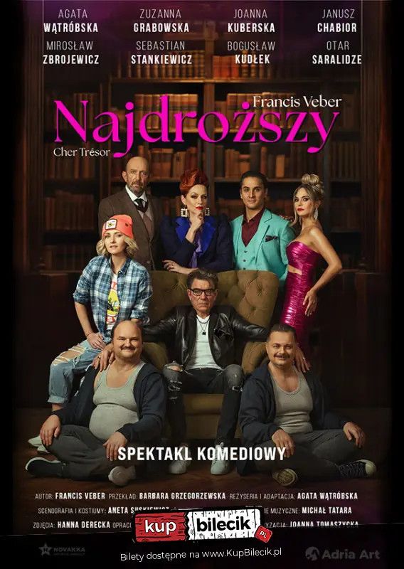 bilety: Zapraszamy na rozbrajający spektakl komediowy o cenie, jaką trzeba zapłacić za szaloną odmianę losu. Kto z nas byłby gotów sięgnąć po skrajności, aby poprawić swój status społeczny? Zaskakujące zwroty akcji i błyskotliwe dialogi i sprawią, że "Najdroższy" rozśmieszy Cię do łez! Mirosław Zbrojewicz/ Janusz Chabior Najdroższy artyści: Sebastian Stankiewicz, Bogusław Kudłek, Mirosław Zbrojewicz, Janusz Chabior, Agata Wątróbska i inniArcymistrz francuskiej lekkiej komedii, Francis Veber, znów wplątuje swego ulubionego bohatera w kłopoty. François Pignon, niezaradny życiowo pechowiec, stracił równocześnie pracę i żonę. Czy jeśli jest tak źle, to może być już tylko lepiej Do czego doprowadzi seria nieoczekiwanych spotkań i zaskakujących zwrotów akcji Zapraszamy na przezabawne i błyskotliwe dwie godziny w wybornym towarzystwie i najlepszym paryskim stylu! Bilety do nabycia na: KupBilecik.pl |